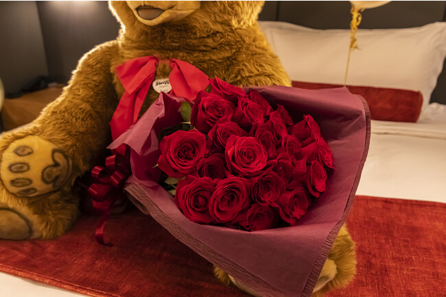 100年以上の歴史を誇るシュタイフ社のテディベア“ボビー”と一緒にスイートルームでクリスマスを祝うステイプラン。バラの花束やバルーンでクリスマスの夜を盛り上げます。