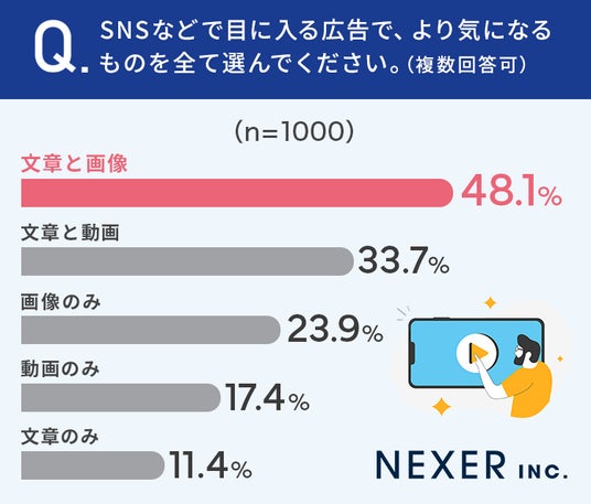 ■48.1%が、SNSなどで目に入る広告で、より気になるものは「文章と画像」