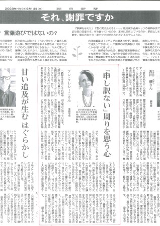 2023年9月14日 朝日新聞「オピニオン欄」に著者アン・クレシーニさんインタビュー掲載