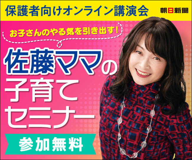 株式会社朝日新聞社(代表取締役社長:中村史郎)は、4人の子どもを東京大学理科三類(医学部)合格に導いた「佐藤ママ」こと佐藤亮子さんの無料オンライン講演会を開催します。新学年を前に、子どものヤル気を引き出して、楽しく学習するための親のサポートについてアドバイスします。2024年度入試問題の解説もあります。参加無料。ご自宅からお気軽にご参加下さい。