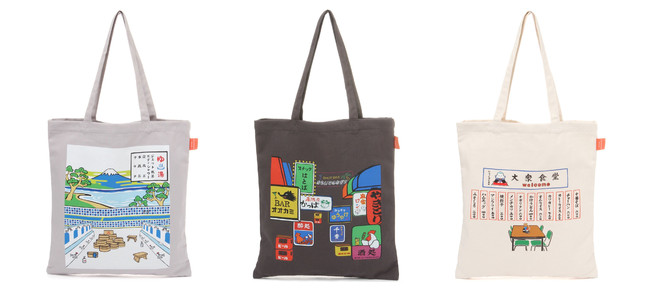 今回のコラボアイテムは、ニコアンドで人気のトートバッグやクッションに、「昭和の居酒屋」の看板やメニューを彷彿させるイラストをプリント。さらに湯飲みやグラスのテーブルウエアまで、どこか懐かしくレトロなアイテムをラインアップします。