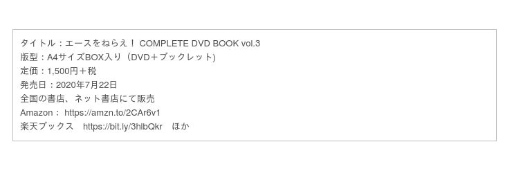本日7月22日、『エースをねらえ! COMPLETE DVD BOOK vol.3』がぴあ株式会社より発売となりました。