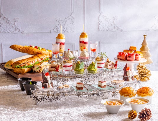 「ウィンター・フェスティブ・アフタヌーンティー」では、クリスマスツリーを模した“ミニタルトツリー風”をはじめ、あたたかく周囲を照らすキャンドルに見立てた遊び心あふれる“チョコレートケーキ”、ホイップクリームと新鮮なラズベリーを用いたスコットランドの伝統的なデザート“クラナカン”でサンタクロースの赤白衣裳を表現するなどクリスマスモチーフを散りばめました。また、「幸せが天まで届くように」という意味を込めて高く積み上げ、食べる時には幸せのお裾分けとして一つずつシューを分け合う“プロフィットロール”をこのアフタヌーンティーではお一人様ずつお召し上がりいただけるようにアレンジ。みなさまの幸せを願ってシェフが考案したおすすめの一品です。華やかな季節にぴったりな“シャンパンゼリー”、クリスマスの定番スイーツ“シュトーレン”など、色とりどりのスイーツが揃います。平日限定で開催するハイティーは、黒毛和牛の煮込みパイ包み焼き、オマールフランなど充実のセイボリーをラインアップ。アルコールとのペアリングも楽しめる大人のハイティーをお楽しみいただけます。フェスティブシーズンにふさわしい煌びやかなスイーツやセイボリーが楽しめる期間限定のアフタヌーンティー&ハイティーを、ぜひこの機会にお楽しみください。