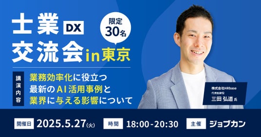 株式会社DONUTS(東京都渋谷区、代表取締役:西村 啓成)が提供するバックオフィス支援クラウドERPシステム「ジョブカン」は、士業事務所の方を対象としたリアルイベント「ジョブカン士業DX交流会in東京」を2025年5月27日(火)に開催いたします。