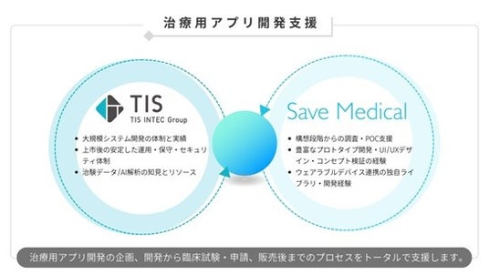 今回の出資を機に、TISとSave Medicalは、DTxおよびSaMDの企画、開発から臨床試験・申請、販売後までのプロセスのトータル支援を共同で実施します。