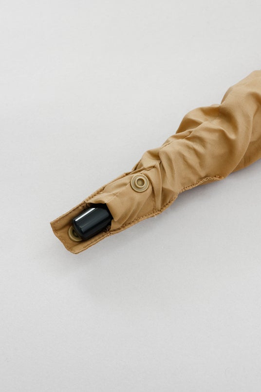 傘の水滴を拭き取りそのまま収納できる吸水ケース。さまざまな傘に対応し、バッグにも取り付け可能。