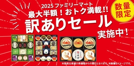 株式会社ファミリーマート(本社:東京都港区、代表取締役社長:細見研介)は、お歳暮ギフトを最大半額の割引価格でご提供する「訳ありセール」を、2025年1月14日(火)から2月13日(木)まで、ファミリーマートのギフト商品を取り扱う「ファミリーマートギフトネット申し込みサービス」で開催します。