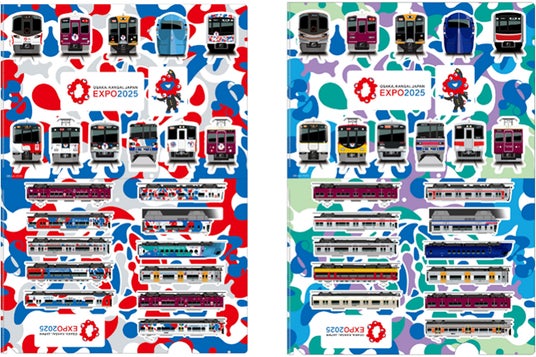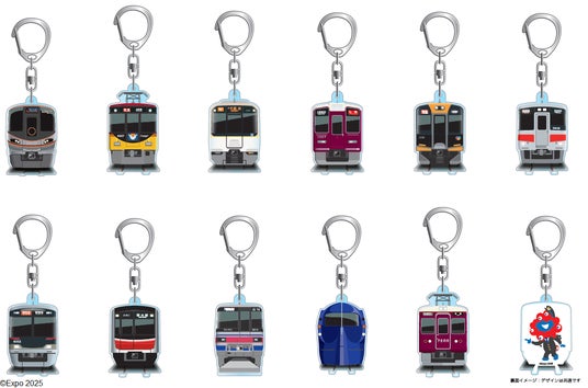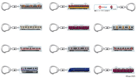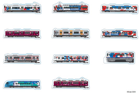 各社の鉄道車両や大阪・関西万博のラッピング列車をモチーフとした全13種類の商品を8月15日より