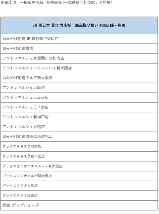 ・一部鉄道会社の駅ナカ店舗(詳細別紙1.)