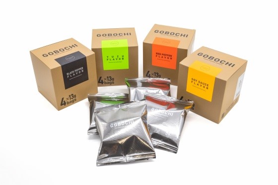 やみつき間違いなし!宮崎発・ごぼうのチップスが登場。パリッとした食感でごぼうのおいしさ、そのままを味わえます。一番人気のプレーン醤油味・ピリ辛味・ブラックペッパー味・ゆず味、ごぼうの優しい甘さが味わえるごぼう茶もご用意。
