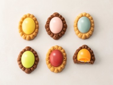 色とりどりのショコラと中からとろっとあふれる果実や木の実のコンフィチュールをお楽しみいただける、クッキーに縁どられたボンボンショコラ。