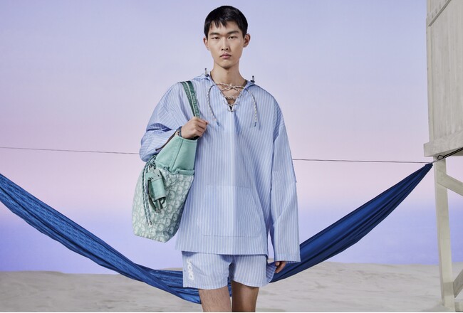キム・ジョーンズは、2024年フォール ビーチウェア カプセルコレクションの発表に際し、クリエイティブなコラボレーションとエコイノベーションを通じて戦略と解決策を開発する、海洋汚染に取り組む環境保護団体でありインパクトネットワークの「パーレイ フォー ジ オーシャンズ(Parley for the Oceans)」との対話を継続します。キム・ジョーンズと「パーレイ フォー ジ オーシャンズ」は、より持続可能なファッションを目指すディオールの想いを反映した、ビーチウェア カプセルコレクションを製作しました。メゾンの絶えず進化し続ける創造性を讃えるように、本コレクションにはアクアグリーンからブルーのトーンまで、ミネラルカラーのパレットが採用され、ホワイトやグレーでアクセントが加えられています。グラフィカルな”DIOR”のイタリックロゴと象徴的な「ディオール オブリーク」モチーフが様々な形であしらわれ、ウォータープルーフのケープ、Tシャツ、「H-タウン」サンダルといったユニークなアイテムの数々を飾ります。コーラルプリントのモチーフが、ショートスリーブシャツ、ショートパンツ、そしてボブハットを彩り、海の世界の素晴らしさを讃えます。「ディオール 8」やマルチウェアのリバーシブルトートなど、今シーズンのバッグには軽量なファブリックが採用され、モダンでカジュアルなスタイルのための、柔軟性と機能性を約束します。卓越性と大胆さによって結ばれた特別な絆を体現する本コレクションは、、2024年5月16日より全国のディオール ブティックと公式オンラインブティックで展開されます。