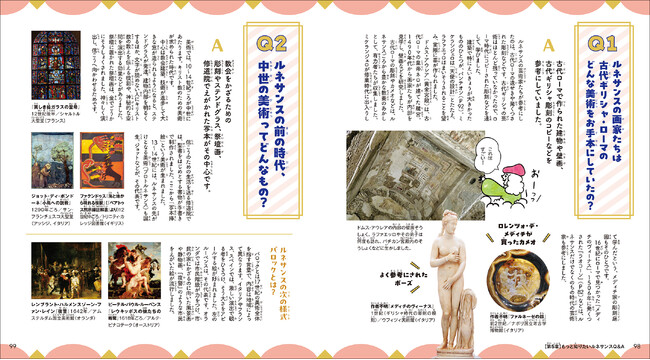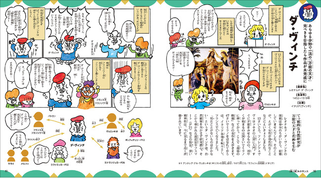 本書では、そんな『モナ・リザ』をはじめとするルネサンス時代に描かれた有名絵画の「どこが」すごいのか、時代背景の解説や活躍した画家たちのエピソードを交えながら、マンガで楽しく辿っていきます。