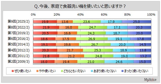 マイボイスコム株式会社(東京都千代田区、代表取締役社長:高井和久)は、9回目となる『自動食器洗い機』に関するインターネット調査を2025年2月1日~7日に実施しました。