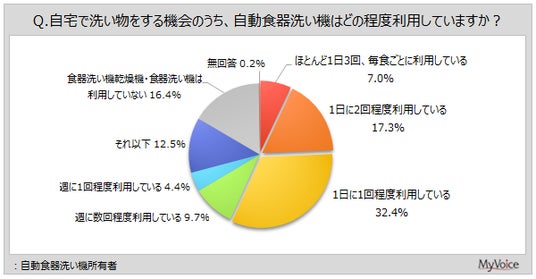 自動食器洗い機所有者のうち、1日1回以上利用している人は6割弱です。