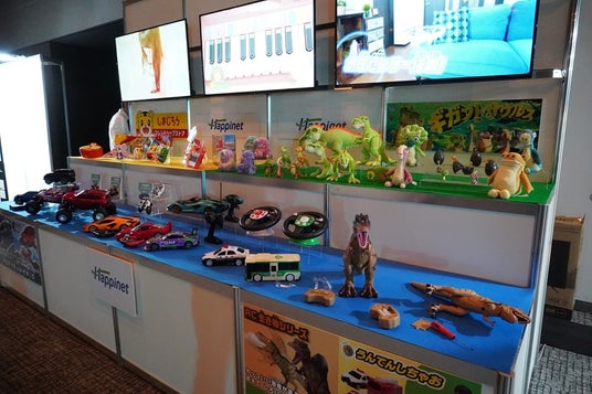 「しまじろうのおもちゃ」「ギガントサウルスのおもちゃ」「なでなでクルンっ」「R/Cシリーズ」といった4カテゴリの当社オリジナル玩具を展示。実際に見て、触って、動かして、オリジナル玩具への理解を深めることができました。