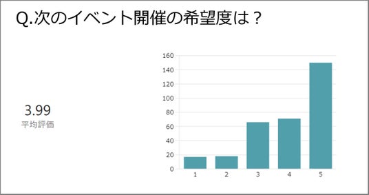 また、次のイベント開催についても平均希望度が3.99(5点満点)と、イベント開催の継続への期待度が高いという結果が得られました。