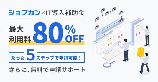さらに「ジョブカン」では、これまで導入費用がネックとなっていた企業のDXやインボイスへの対応を後押しするため、サービス導入時に「IT導入補助金2025」を活用したい企業の申請から補助金交付までを無料でサポートいたします。