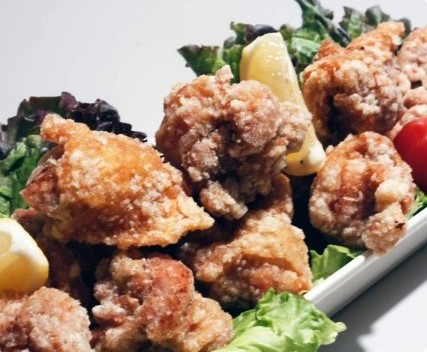 引き締まった肉質と、ほかの国産若鶏と比べて多く含まれる旨み成分が特徴の“奥州いわいどり”を使用。醤油・生姜・玉ねぎからなる秘伝のタレに漬け込み、馬鈴薯でんぷんを薄くまぶして揚げた岩手県一関市のソウルフードです。衣はサクサク、お肉はジューシー。生姜の爽やかな香りと玉ねぎの甘みが特徴で、ご飯のおともやお酒のアテにぴったり!