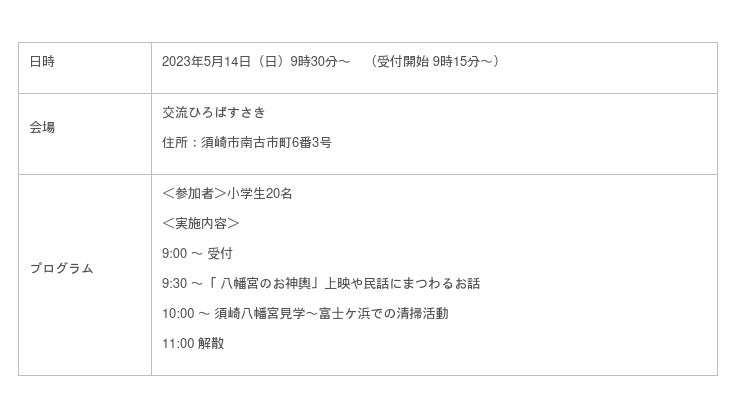 日時:5月14日(日) 9時30分~ 場所:交流ひろばすさき