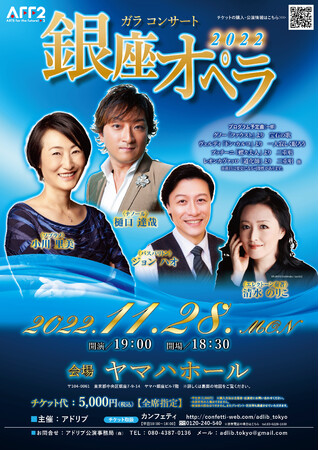 アドリブ公演事務局主催、『銀座オペラ・ガラコンサート』が2022年11月28日 (月)にヤマハホール(東京都中央区銀座7-9-14ヤマハ銀座ビル7階)にて開催されます。