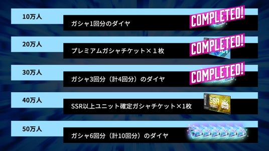 100,000人突破⇒ガシャ1回分のダイヤ 達成済