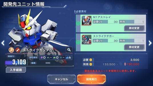 自分の好きなモビルスーツやキャラクターを集め、成長・開発・編成といった
