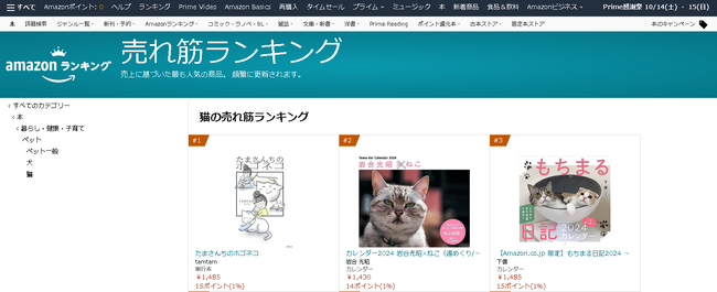 予約殺到で【Amazon 売れ筋ランキング 本 猫部門】1位に!(2023/10/2調べ)