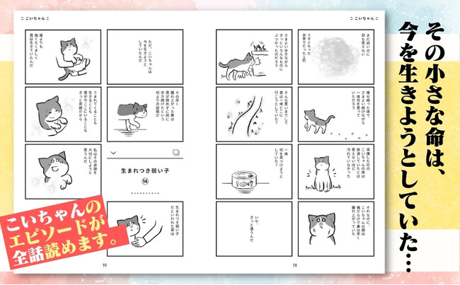 本書には、tamtamさんが「今を生きる」意味を教えてくれたという、6匹のホゴネコとのエピソードを収録しています。「生まれつき弱い子」だと言われた猫の「こいちゃん」は、職場の裏口で偶然保護した時、鼻を真っ赤に腫らしていたそうです。それは一体どうしてか…? tamtamさんが感じた、「ちいさな命」の物語をぜひご覧ください。