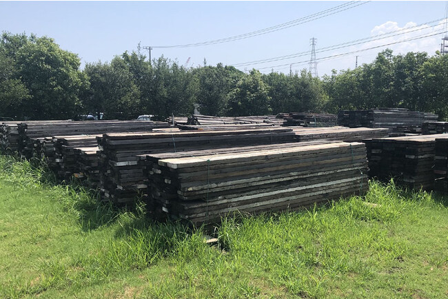 足場板とは、造船所のドックで足場に使われる杉板のこと。アルミ製の素材の切り替えが進む中で、廃材として大量に廃棄処分されることが問題となっています。このたびのリモデルに際し、ライフスタイルプロデューサーとして活躍されているWAKOさんから、愛媛県の造船所にある足場板の廃材約5,000枚の活用についてご相談を受けたことをきっかけに、WAKOさんのデザイン監修をいただきながら、リモデルの中で内装資材として活用。
