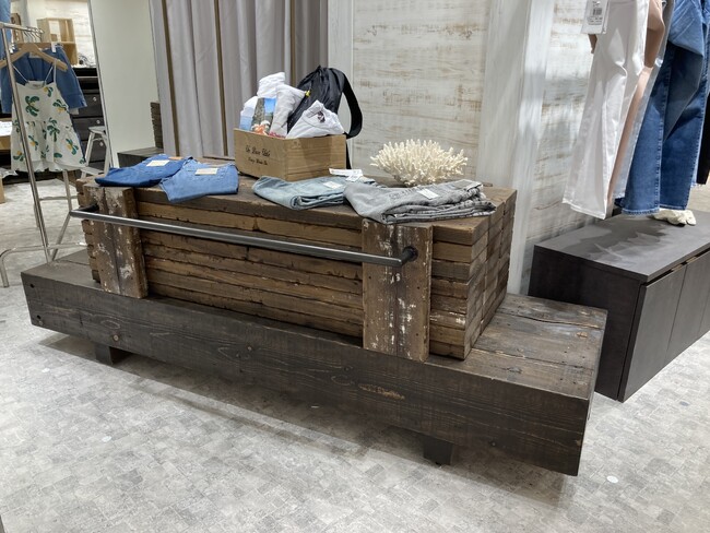 2022年8月にオープンした「Hankyu Mode Kobe × SHARE WOODS」(新館1階~3階)では、木材価値を創造するコミュニティ企業「SHARE WOODS」の代表、山崎正夫氏と協業し、神戸・六甲山の手入れから発生する木材(間伐材)を活用したコンテンツを開発。