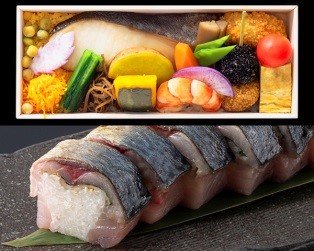 〈きじま〉(上)銀だらの有機味噌漬け焼き弁当(1食) 1,998円、(下)炙りとろ鯖 棒寿司(1食・8貫) 1,890円/本館地下1階 中央階段前