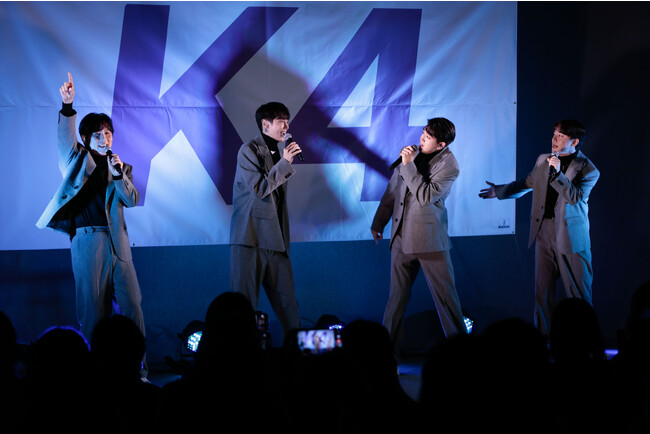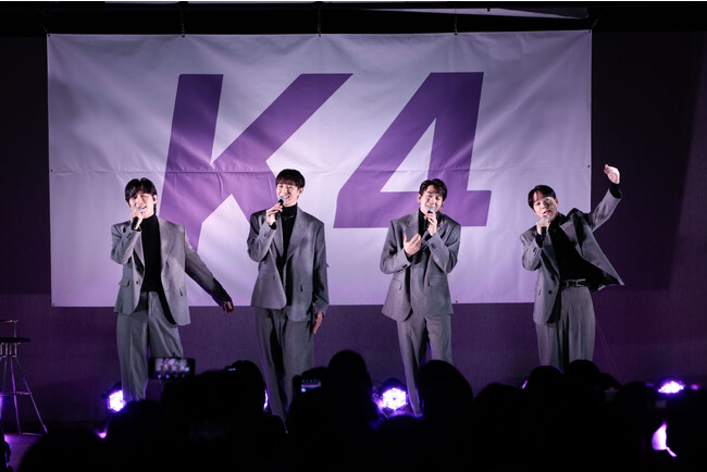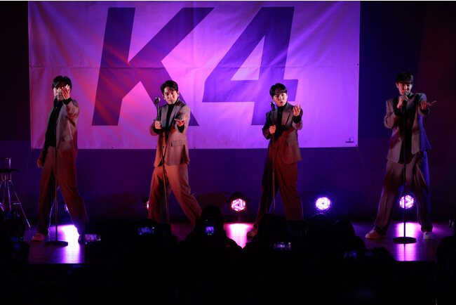 昨今のK-POPとは一線を画する歌をじっくり聴かせる“ADULT K-POP”グループ・K4。先月10月18日にミニアルバム「「K4YOU ~K for you~」をリリース以来、各地のリリースイベントやメディアを通じて披露される圧倒的な歌唱力とハーモニーがじわじわ話題となっている韓国人男性4人組ヴォーカルグループです。K4が、11月23日(木・祝)都内にてスペシャルLIVEを開催しました。