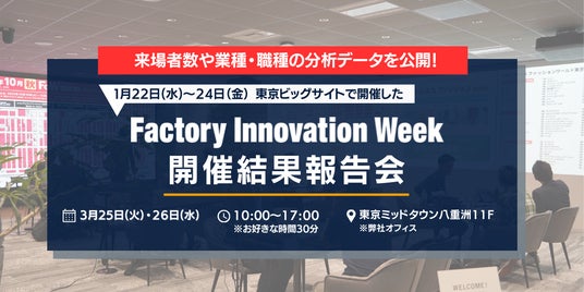 RX Japan株式会社(本社:東京都中央区、代表取締役社長:田中 岳志)は、今年1月22日~24日に東京ビッグサイトで開催した「Factory Innovation Week 2025」の開催結果報告会を実施いたします。