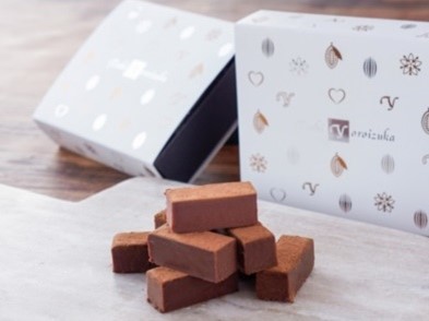 〈トシ・ヨロイヅカ〉(上)メープルリーフパイ(10枚入) 2,000円、(下)ショコラ ホワイトカカオ(8粒入) 1,500円/地階 MAP5.