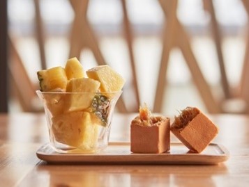 (上)「パイナップルケーキ」が人気の〈サニーヒルズ〉の新商品が、日本ではどこよりも先に大丸東京店に登場!もっちりとした食感、深い甘みとほのかな酸味が特徴的な台湾の山岳バナナを使用。ココアバターで滑らかに仕上げたバナナフィリングをサクサクのワッフルクッキーで挟みました。(下)台湾原種の香り高い完熟パイナップル、生地には新鮮なブランド卵やニュージーランド産グラスフェッドバターを使用した、香り豊かなパイナップルケーキ。