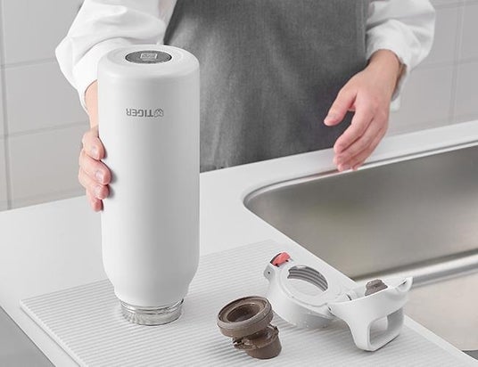 保冷専用の直飲みタイプで、ペットボトルのように開閉できるねじキャップが特徴。氷を入れやすい広口設計に加え、内部の底面が丸いため洗いやすくなっています。スポーツドリンクにも対応。