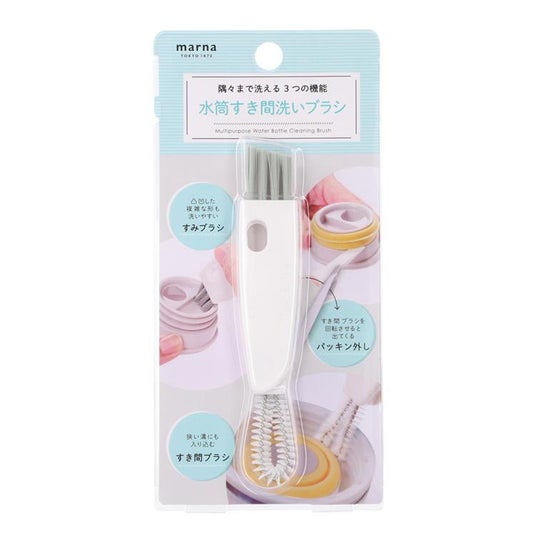 水筒の蓋や飲み口の狭いすき間や複雑な凹凸などに対応して洗える3つの機能がついたブラシ。