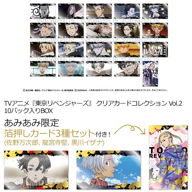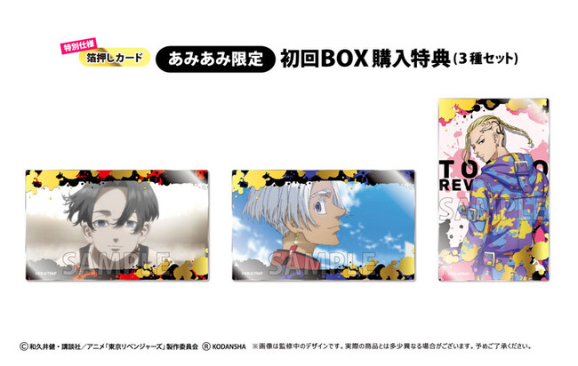 あみあみ限定特典付きとして「箔押しカード 3種セット(佐野万次郎、龍宮寺堅、黒川イザナ)」が付属!