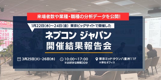 RX Japan株式会社(本社:東京都中央区、代表取締役社長:田中 岳志)は、今年1月22日~24日に東京ビッグサイトで開催した「第39回 ネプコンジャパン」の開催結果報告会を実施いたします。