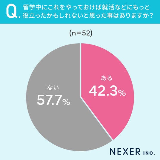 ■42.3%が「留学中にこれをやっておけば就活などにもっと役立ったかもしれない」と思った事が「ある」