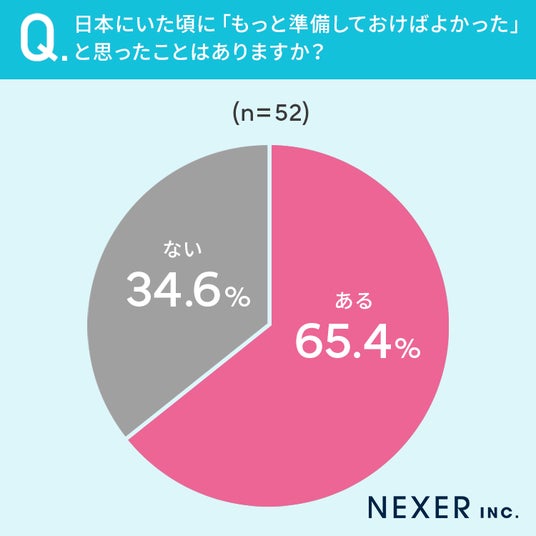 65.4%が、日本にいた頃に「もっと準備しておけばよかった」と思ったことが「ある」と回答しています。