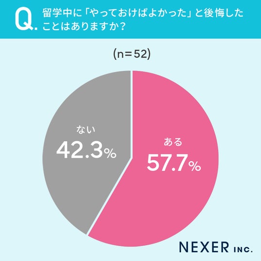 57.7%の方が、留学中にやっておけばよかったと「後悔したことがあった」と回答しています。