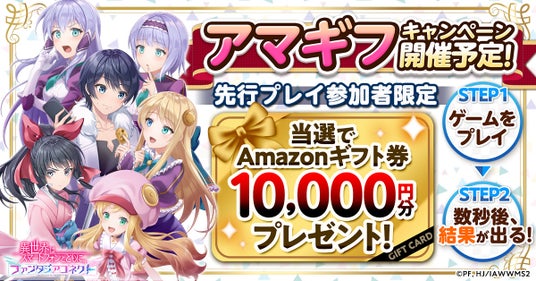 先行プレイ期間中にゲームをプレイすると、その場で抽選結果が分かるキャンペーンに参加可能となり、当選された方には Amazonギフト券10,000円分をプレゼント予定です。