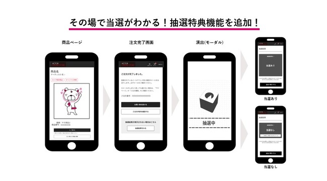 抽選特典機能は、第一弾として、株式会社JVCケンウッド・ビクターエンタテインメントが運営する自社オンラインストア「VICTOR ONLINE STORE」にて採用が決定しました。