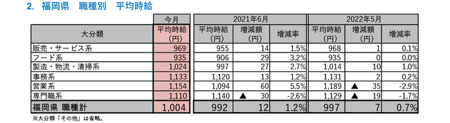 株式会社リクルート(本社:東京都千代田区、代表取締役社長:北村 吉弘)の調査研究機関『ジョブズリサーチセンター(JBRC)』(https://jbrc.recruit.co.jp/)が、2022年6月度の「福岡県版 アルバイト・パート募集時平均時給調査」をまとめましたので、ご報告致します。