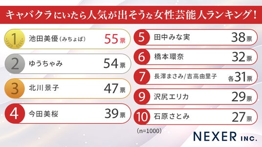 株式会社NEXER・キャバクラにいたら人気が出そうな女性芸能人に関する調査