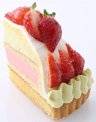 甘酸っぱい苺のムースを風味豊かなアーモンドタルト、ピスタチオクリームと一緒にお楽しみください。