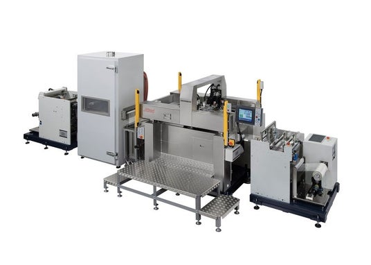 特に薄いフィルム素材に高精度で印刷を行う事に特化したロール材料への印刷装置です。 UV乾燥装置、ラミネート装置、プレス装置、スリット装置等による複合ラインで印刷から加工の製品工程を