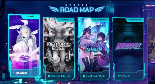 スペシャルサイトでは、アップデート事前登録の他、アップデートのロードマップ、新キャラクター(コスチューム)の紹介、イベントカセット「MEMORY'S EDGE」、シーズンイベント「GOODBYE FREEDOM」など、アップデートで実装されるゲームコンテンツ情報を閲覧いただけます。